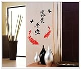 Chinese Characters with Koi Fish: Wealth and Well-being Removable Wall Decals